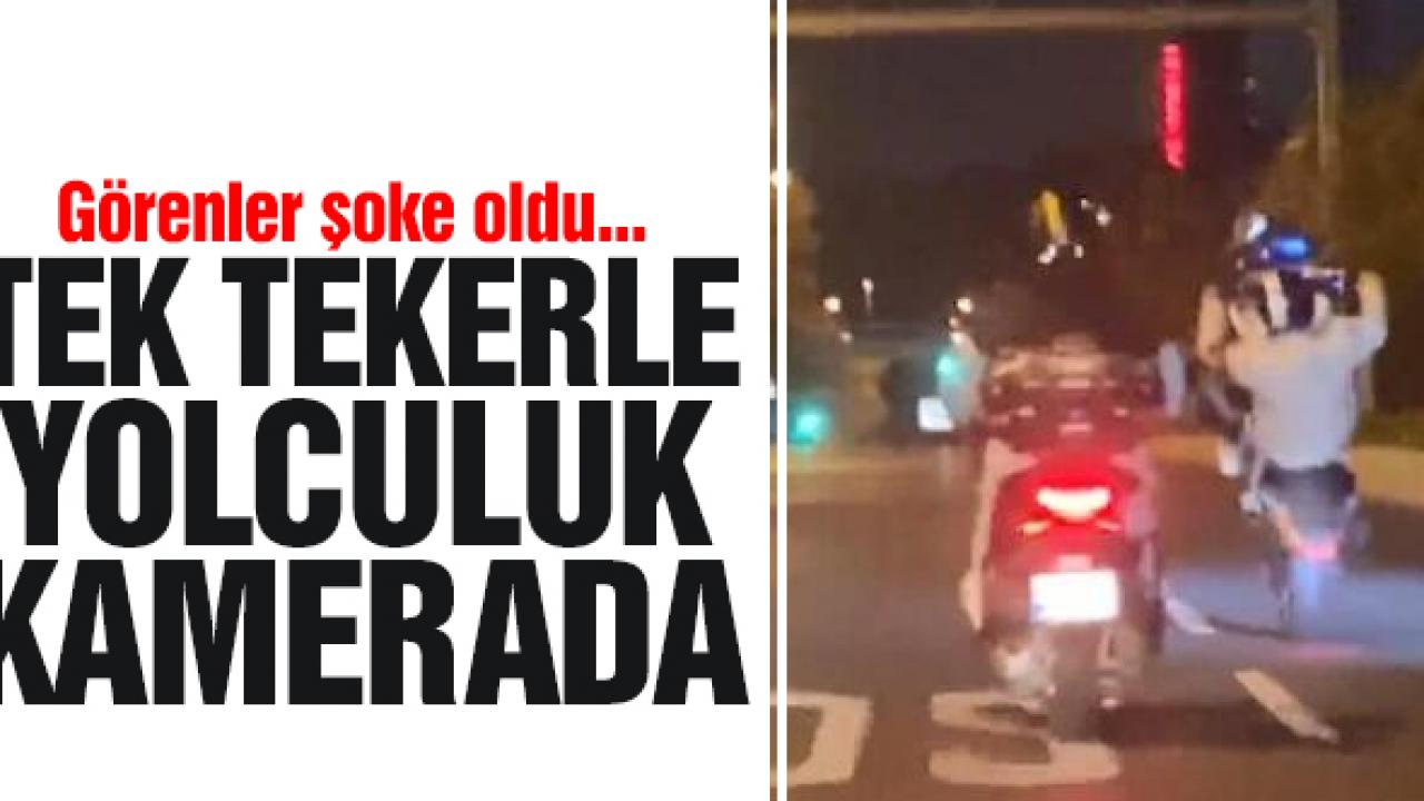 ŞİŞLİ'de motosikletli, tek teker ilerleyerek hem kendini hem de trafiktekilerin canını tehlikeye attı. O anlar kameraya yansırken, bu sırada yanında seyreden iki motosiklet sürücüsünün de akrobatik hareketler yapan sürücüyü korumaya çalıştıkları görüldü.