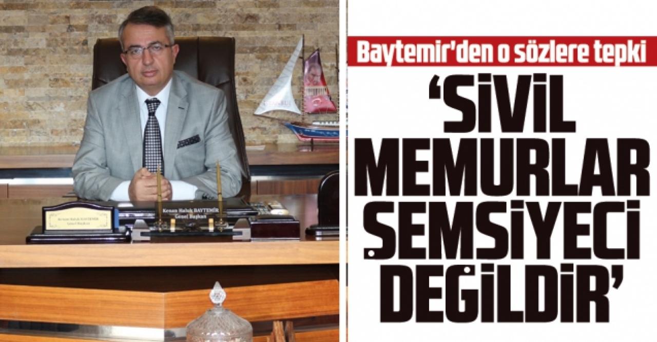 Her şeye rağmen “Bir subay değilde şemsiyeyi bir sivil memur tutsaydı” şeklindeki açıklamanın kabul edilemeyeceğini anlatan Baytemir, “Sivil memurların içinde şemsiye tutuculuğu mesleği üzerinden istihdam edilmiş bir personel bulunmamaktadır. Bu doğrultuda, Beyaz TV’yi ve programın sunucusunu Türk subayı tarafından insani bir tavır olarak ortaya konan eylem için sanki toplum tarafından hoş görülmeyecek bir iş yapılmış gibi gösterilmesi ve sivil memurlar adına kullandıkları ayrıştırıcı ve küçük düşürücü dili için kınıyoruz” dedi.