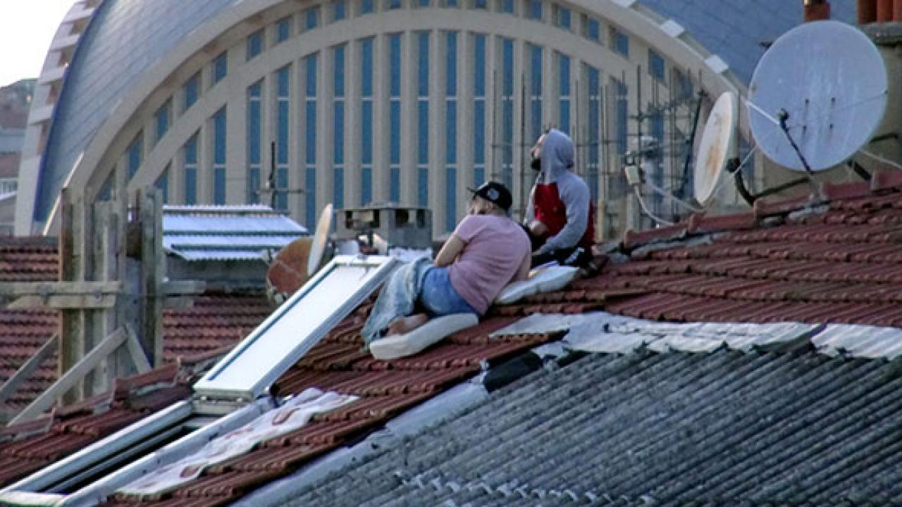 Sokağa çıkma yasağının uygulandığı hafta sonunda renkli görüntüler de objektiflere takıldı. Avcıalr'da iki kişi dışarı çıkamadıkları gerekçesiyle bina çatısına çıkarak güneş ve manzarayı izledi.
