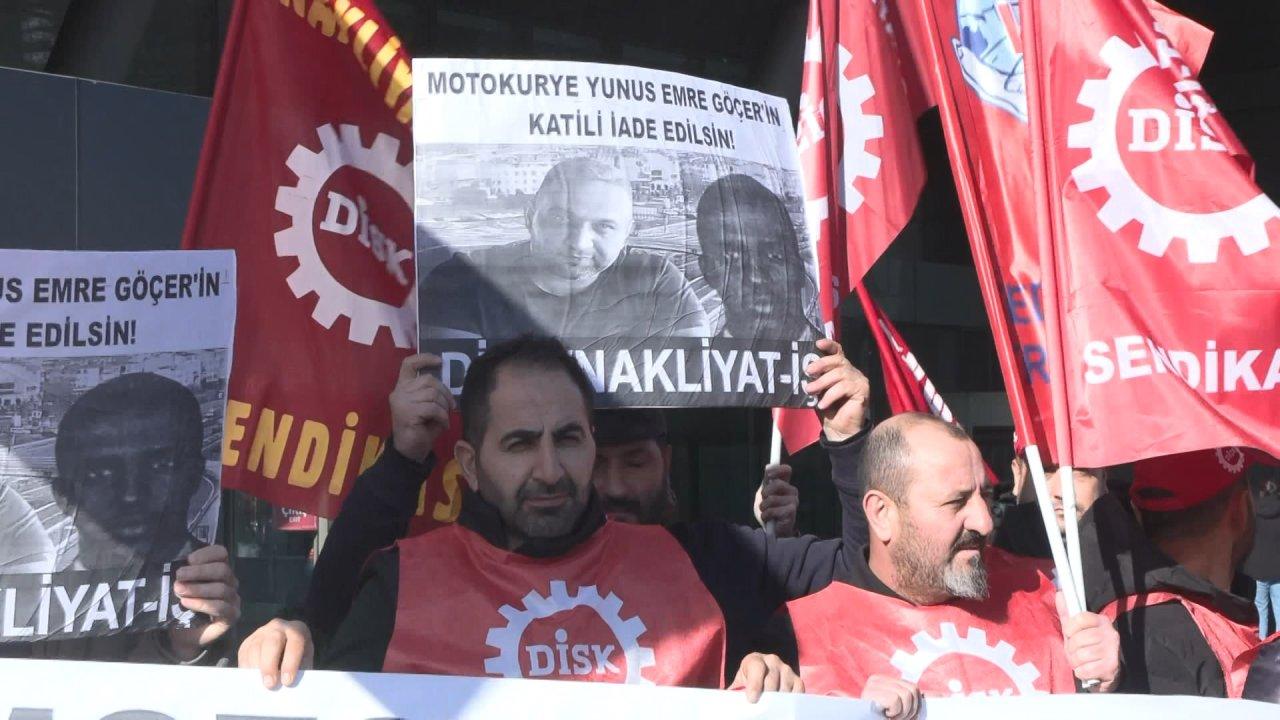 Nakliyat-İş Sendikası Levent'teki Somali İstanbul Konsolosluğu önünde Somali Cumhurbaşkanı'nın oğlu Hassan Shekh Mohamud'un araçla çarparak ölümüne neden olduğu motokurye Yunus Emre Göçer için protesto gösterisi yaptı. Nakliyat-İş Sendikası Genel Başkanı Ali Rıza Küçükosmanoğlu, "Bugün burada bir trafik cinayetine kurban giden Yunus Emre Göçer kardeşimizin trafik cinayetinde katledilmesini protesto etmek ve katliamdan sorumlu olan katilin iadesini talep etmek için buradayız. Bunu haykırmak için buradayız. Somali Fahri Konsolosluğu'nun bulunduğu binanın önündeyiz. Yunus Emre Göçer yaşamını devam ettirmek için motokurye olarak çalışan bir kardeşimizdi. Yunus Emre Göçer 30 Kasım'da Somali Cumhurbaşkanı'nın oğlu Hassan Shekh Mohamud tarafından işlenen trafik cinayetinde vefat etti. Önce yaralanıyor, hastaneye kaldırılıyor; sonrasında vefat ediyor. Cinayetten sorumlu olan Hassan Shekh Mohamud polis gözetiminde karakola götürülüyor; ifadesi alınıyor. İfadesi doğrultusunda bir tutanak tutuluyor. Savcıyla yapılan görüşmeden sonra bekletiliyor. Bu arada İBB kameraları tarafından olay anını gösteren görüntüler ortaya çıkıyor. Kamera kayıtlarına göre Hassan Shekh Mohamud'un yüzde 100 kusurlu olduğu ortaya çıkıyor. Daha önce tutulan polis tutanağında sanki kazanın sorumlusu tamamen Yunus Emre Göçer'miş gibi yazılmıştı. Bu kişi serbest bırakılmadan önce kamera kaydı gelmesine rağmen, kayıtlara göre de yüzde 100 kusurlu olmasına rağmen yine de serbest bırakılıyor. Trafik cinayetinden sorumlu olan Hassan Shekh Mohamud 2 Aralık tarihinde elini kolunu sallaya sallaya ülkeden çıkış yapıyor. Biz sendika olarak bu olayın, bu trafik cinayetinin, bu katliamın peşini bırakmayacağız. 2023 yılında onlarca motokurye arkadaşımız sipariş yetiştirme baskısıyla trafik cinayetine kurban gitmiştir. Sendikamız da bu alanda motokuryelerin örgütlenmesi adına faaliyetlerine devam etmektedir. Uluslarası diğer sendikalarla da bu mücadelemiz dayanışma içerisindedir. Yunus Emre Göçer'in katilinin iade edilmesi, bununla ilgili olan biten hukuksuz ve keyfi birtakım senaryoların deşifre edilmesi için buradayız. Yunus Emre Göçer kardeşimizin katledilmesine karşı protestolarımız, mücadelelerimiz, katilin iadesiyle ilgili gereken her türlü mücadeleyi vermeye devam edeceğiz" diye konuştu.