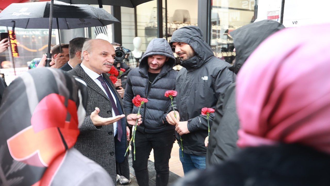 Yerel seçim çalışmalarını yoğun bir tempoyla sürdürdüklerini söyleyen Aydın, "Hava şartları ne olursa olsun, insanımıza kalan bu sürede de ulaşmaya çalışıyoruz. Çok gayri adil bir seçim geçiriyoruz. Eşit olmayan şartlarda bir seçim dönemindeyiz. Biz de kadın ve gençlik kollarımızla, teşkilat mensuplarımızla çok yoğun bir tempo içerisindeyiz. Gelecek 5 yıl İstanbul için önemli. İstanbul'da bugüne kadar işlenen çok ağır suç ve ihanetler var. Bu ihaneti yapanların, suçları işleyenlerin yanına bırakmamak ve İstanbullulara karşı bu suçların tekrarlanmamasını sağlamak için bir anlayış değişikliğine ihtiyaç var. Bu yönde çaba gösteriyoruz. Dün Fikirtepe'de Sayın Kurum'un posteri vardı. Kentsel dönüşüm içinde ve o büyük beton yığınları üzerindeki posterin yerini değiştirip başka yere almışlar. Murat Kurum Bey, Çevre Şehircilik tabelası ile yan yana gelmek istememiş. Ne yardan ne de serden geçiyorlar ama biz İstanbul'dan vazgeçmeyeceğiz. Onlar nelerden vazgeçerse geçecekler" ifadelerini kullandı.