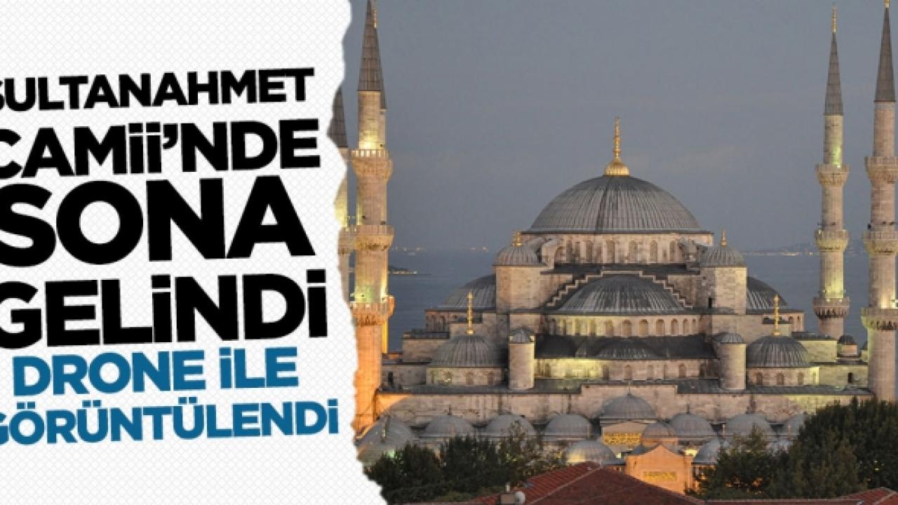 Osmanlı mimarisinin 6 minareli tek camisi olan Sultanahmet Camii'nin restorasyon çalışmalarında sona yaklaşıldı. Ana kubbesi tamamlanan caminin, dış cephesi ve avlusundaki devam eden çalışmalar ise drone ile havadan görüntülendi. Osmanlı padişahı I. Ahmed tarafından Mimar Sedefkar Mehmet Ağa'ya, Ayasofya'nın karşısına yaptırılan ve 1617'de ibadete açılan Sultanahmet Camii'nin restorasyonunda sona yaklaşıldı. 43 metre yükseklikte olan ana kubbenin içerisindeki 17. yüzyıla ait olan desen ve renkler cerrah hassasiyeti ile temizlenerek süslemeleri yapıldı ve kubbedeki tüm çalışmalar tamamlandı. Ayrıca Nur ve Fatır Suresi'nin yazılı olduğu ana kubbe camiye gelen yerli ve yabancı turistler tarafından da görülebiliyor. Öte yandan caminin dış cephesi ve avlusundaki işçilerin hummalı çalışması drone ile havadan görüntülendi.