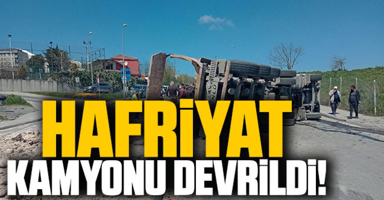Sultangazi'de hafriyat kamyonu, sürücüsünün direksiyon hakimiyetini kaybetmesi sonucu devrildi. Kazada yaralanan olmazken, kamyonun kasasında bulunan hafriyatlar yola saçıldı.