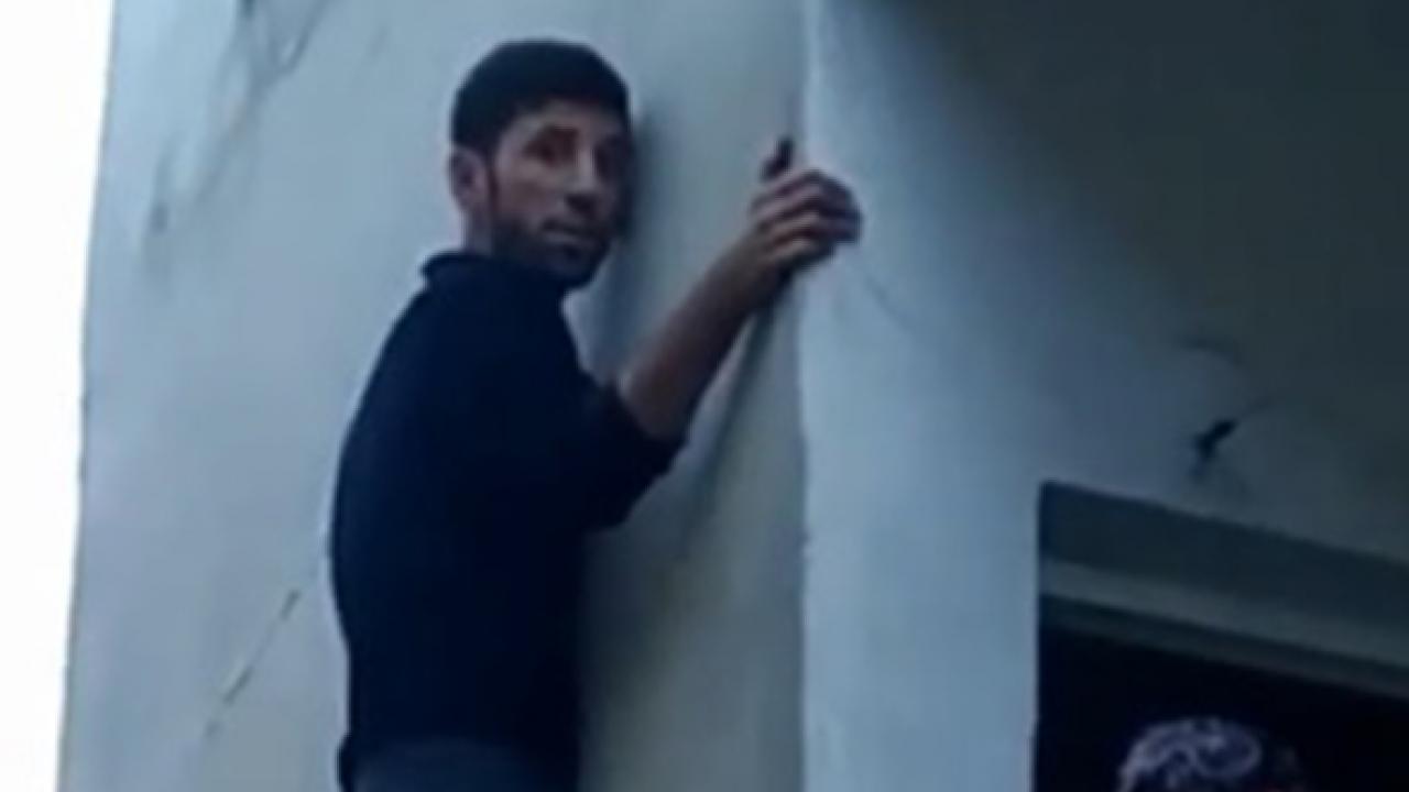 Yakalanmamak için yaklaşık 10 metre yükseklikte mahsur kalan hırsıza ev sahibi Şefika Yeşil ve bina sakinleri tepki gösterdi. Pencereye tutunan hırsız, bina sakinlerine kendisini bırakmaları için adeta yalvardı. Kısa bir süre sonra ise tutunduğu pencereden balkona geçen hırsız, kaçmayı başardı. O anlar ise bir kişinin cep telefonu kamerasına yansıdı. Görüntülerde, pencereye tutunan hırsızın kendisine tepki gösteren bina sakinlerine "düşeceğim" dediği duyuluyor.