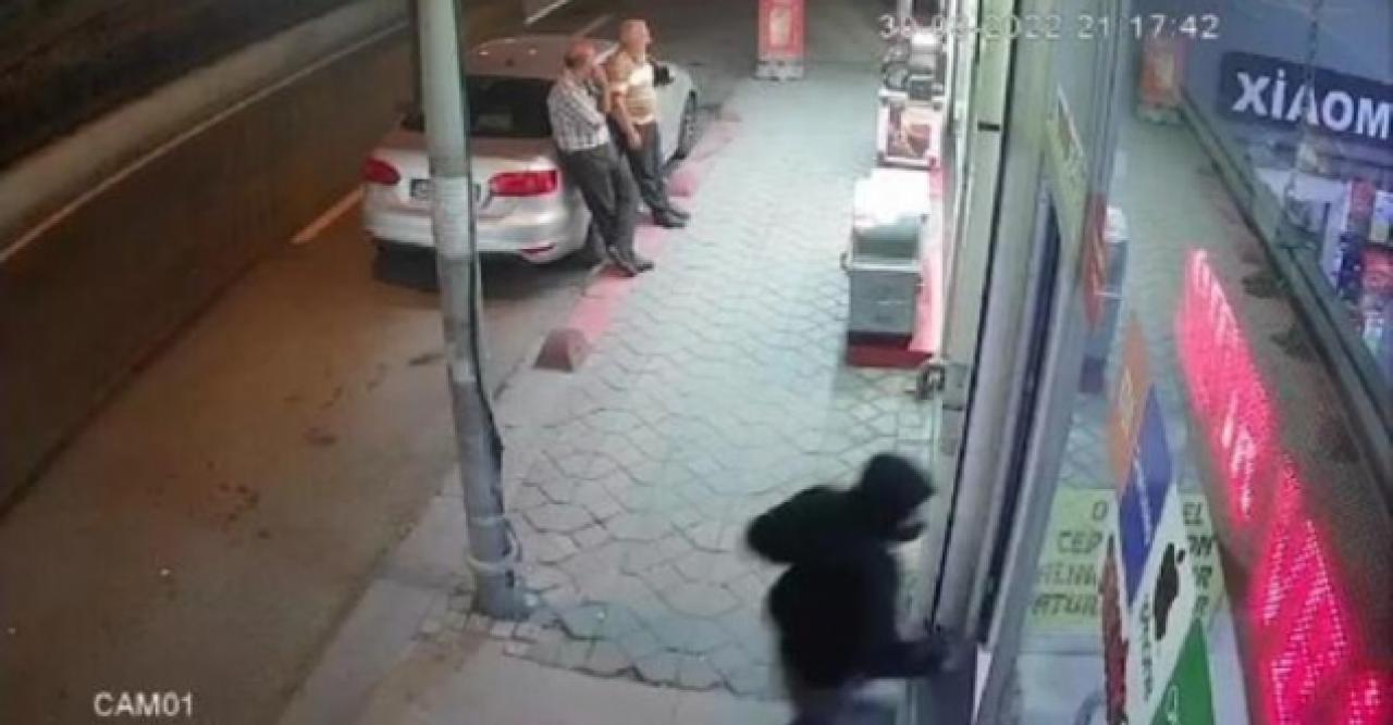 Öte yandan, yaşanan olay iş yerinin güvenlik kamerasına yansıdı. Görüntüler de, kapşonlu ve maskeli kişinin koşarak içeri girdiği, yanındaki silahla bir el ateş ettiği ve daha sonra yine koşarak olay yerinden uzaklaştığı, kaldırımda sohbet eden iki kişinin paniklediği görülüyor.