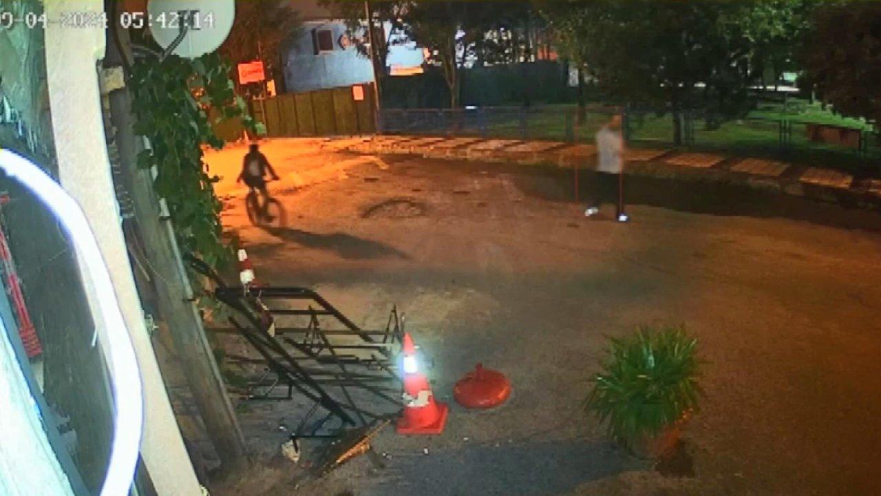 Gece saatlerinde çevreyi kontrol eden şüpheli binaların internet kablolarını kesmeye başladı. Şüpheli başka bir binadan çaldığı bisikletle olay yerinden kaçtı. O anlar güvenlik kamerası tarafından kaydedildi.