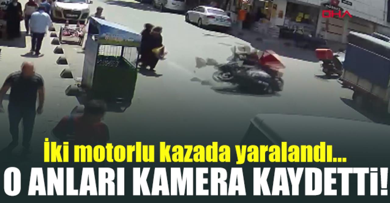 Sultangazi'de iki motosikletlinin yaralandığı kaza güvenlik kamerasına yansıdı.