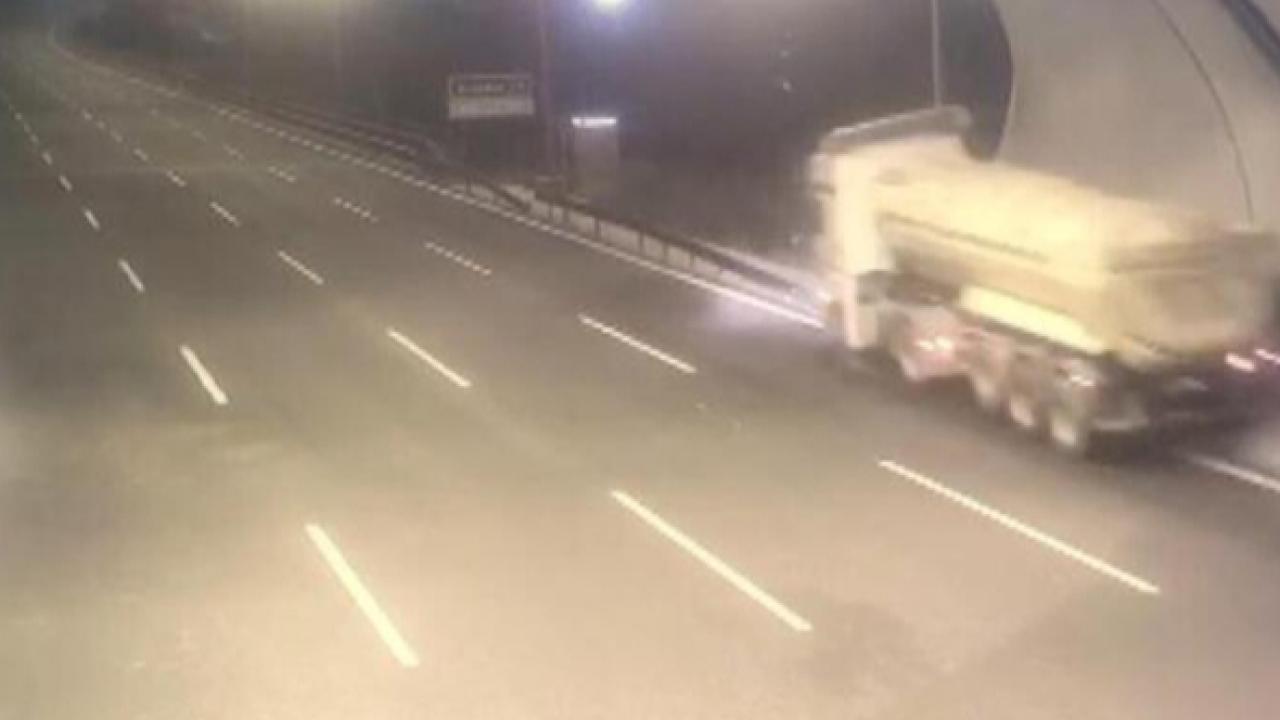Sultangazi Cebeci Tüneli çıkışında şoförünün hakimiyetini kaybettiği tır dereye düştü.