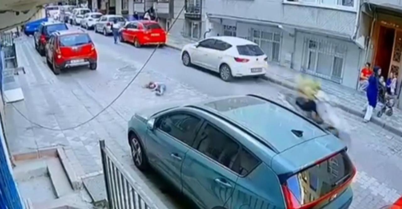 Sultangazi'de sokakta hızla giden motor yola fırlayan çocuğa çarptı.