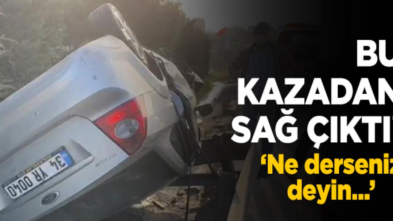 Kaza, O-3 bağlantı yolunda dün saat 19.00'da meydana geldi. İddiaya göre Sağmalcılar mevkii Aksaray yönünde ilerleyen otomobile aynı yönde ilerleyen başka bir otomobil çarptı. Çapmanın şiddetiyle sürücüsünün kontrolünden çıkan otomobil başka bir otomobile çarptıktan sonra savruldu. Yol kenarındaki bariyerlere de çarpan araç takla attı. Takla atan otomobilin içindeki sürücü ve yanındaki kişi kazayı gören diğer sürücülerin de yardımıyla dışarıya çıktı. Üç otomobilin karıştığı kazada, takla atıp kullanılmaz hale gelen otomobilin içinde bulunan iki kişi kazadan şans eseri burunları bile kanamadan kurtuldu.