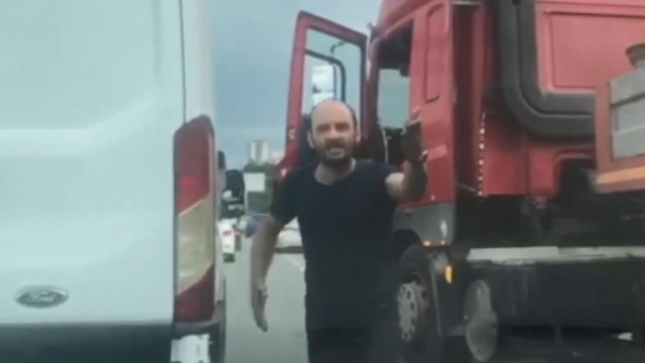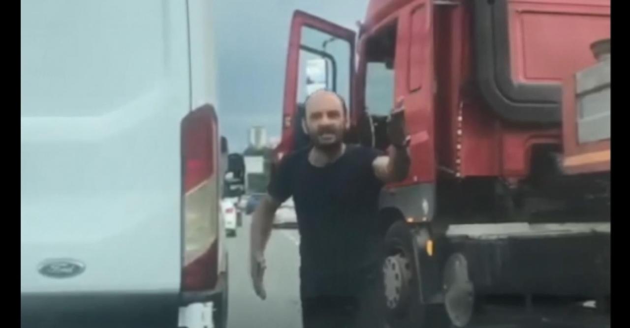 TIR şoförü tekrar aracına binip, geri geri gelerek içinde iki kişinin bulunduğu otomobili ezmeye çalıştı. Otomobildekiler büyük korku yaşarken, TIR şoförü olay yerinden ayrıldı. Cep telefonu ile görüntülendiğini anlayan şoförün, TIR'ın plakasını söktüğü görüldü. Sürücü Erdem Kuz'un kendisine küfür ve hakaretler ederek ezmeye çalışan TIR şoföründen şikayetçi olduğu öğrenildi. Yaşananlar cep telefonu kamerası ile görüntülendi.