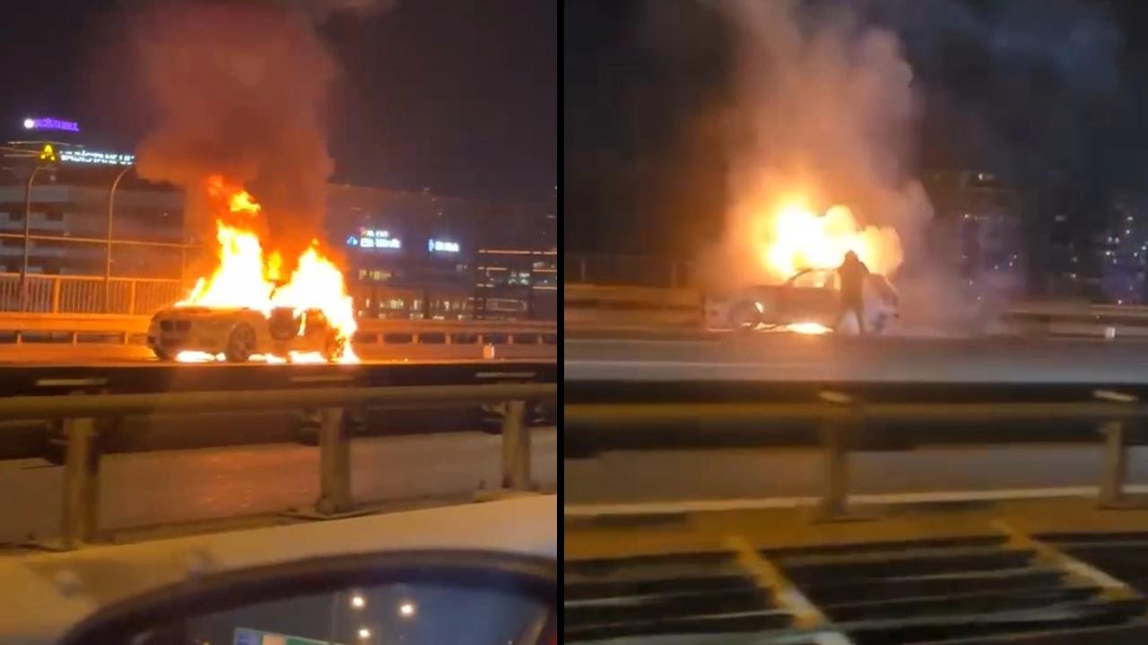 Olay İstanbul Kağıthane TEM Otoyolu Edirne istikameti, Seyrantepe mevkiinde meydana geldi. İddiaya göre seyir halinde ilerleyen bir araç henüz bilinmeyen bir nedenle yanmaya başladı.