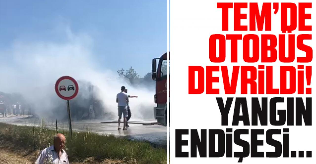 Silivri - Çerkezköy TEM Otoyolu gişelerine yakın bir mevkide otobüs devrildi. Kaza sonrası olay yerine gelen ekipler söndürme çalışması başlatırken alevlerin ormana ulaşmaması için uğraş veriliyor.