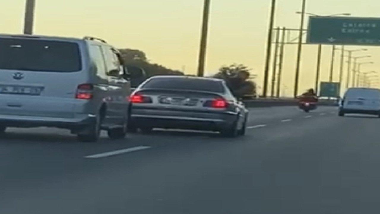 DHA- Arnavutköy, TEM Otoyolu'nda iddiaya göre sol şeritte düşük hızda ilerleyen ve otomobillere yol vermeyen minibüs şoförü ile otomobil sürücüsü arasında tartışma çıktı. Otomobil sürücüsü seyir halindeki minibüsün önüne geçerek sürücüye tepki gösterdi. Otomobilin minibüsün önüne geçtiği anlar ve yaşanan tartışma cep telefonu kamerasına yansıdı.