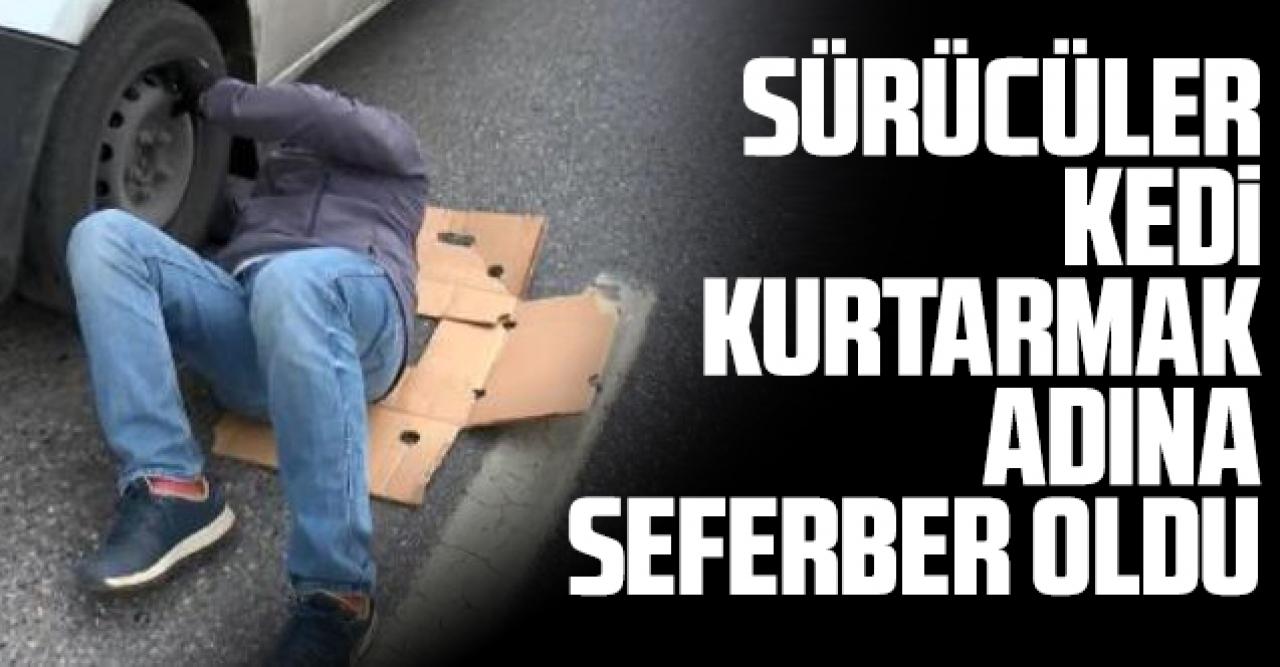 Çanaklı, "Karşıya geçmeye çalışıyordu. Aracın altına girdi, çıkardık" dedi. Kedinin kurtarılması sırasında kısa süreli trafik yoğunluğu yaşandı. (DHA)