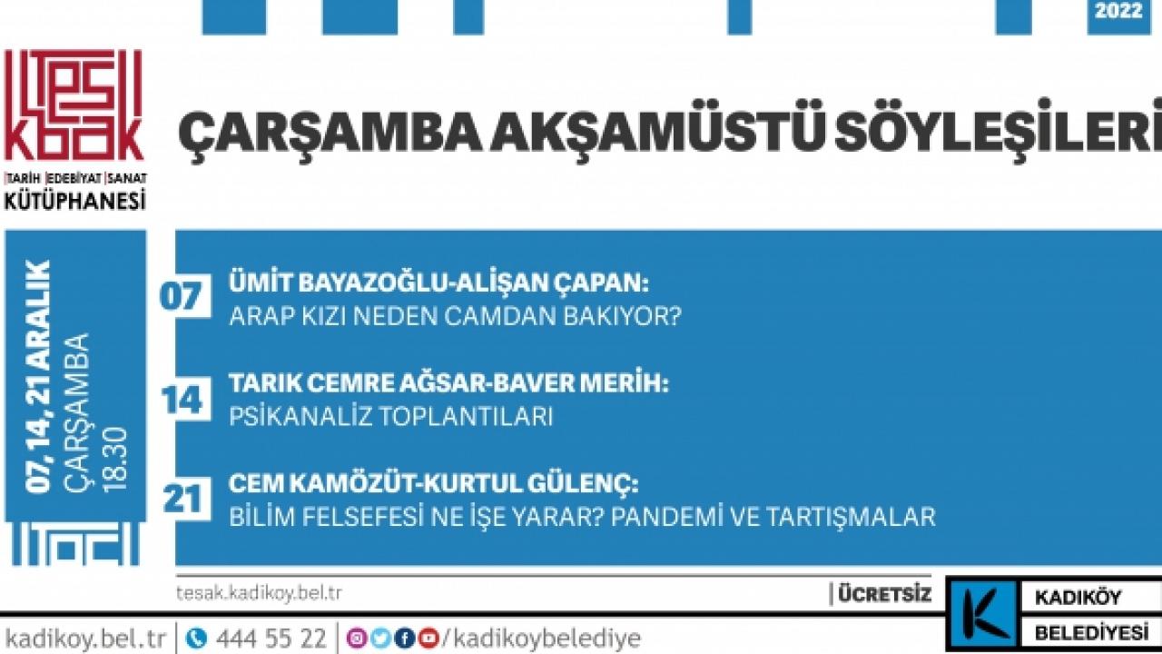 TESAK’ta 7 Aralık Çarşamba günü saat 18.30’da gerçekleşecek Çarşamba Akşamüstü Söyleşileri’nin konuğu gazeteci - yazar Ümit Bayazoğlu olacak. Kadıköy Belediyesi Kültür ve Sosyal İşler Müdürü Alişan Çapan’ın moderatörlüğünü yapacağı söyleşide Bayazoğlu Osmanlı topraklarında 19. yüzyıla dek görmezden gelinen köle ticaretini, harem ağalarını, ev kölelerini, cariyeleri, zenciliğin ve köleliğin edebiyattaki yansımalarını ve Türkiye’ye yerleşmiş Afrika kökenli insanların hikayelerini meraklılarına anlatacak.