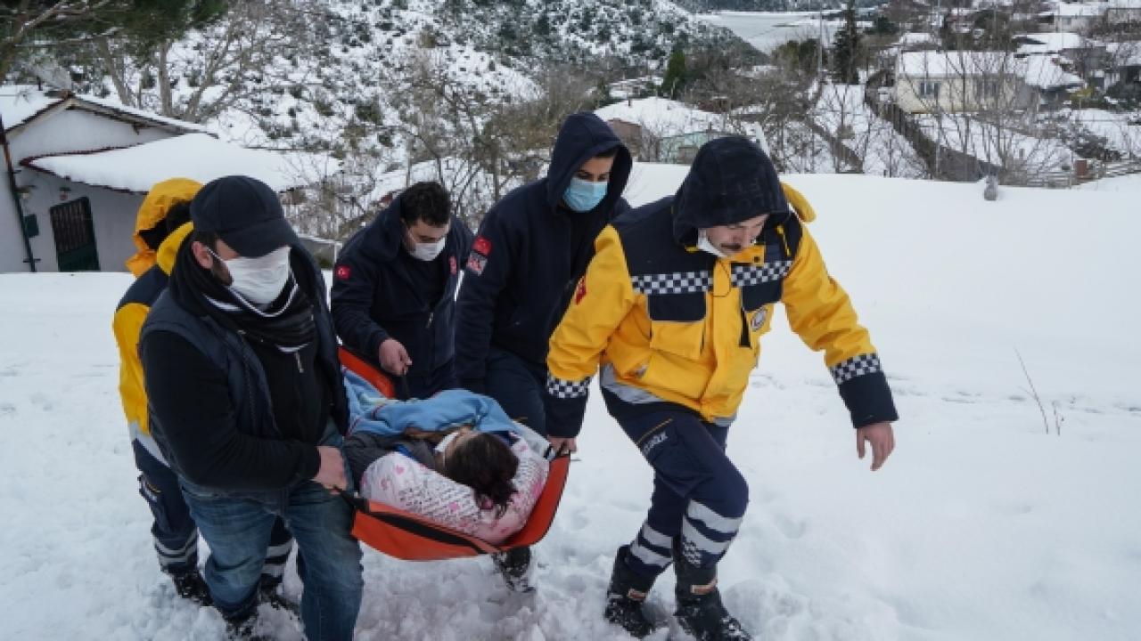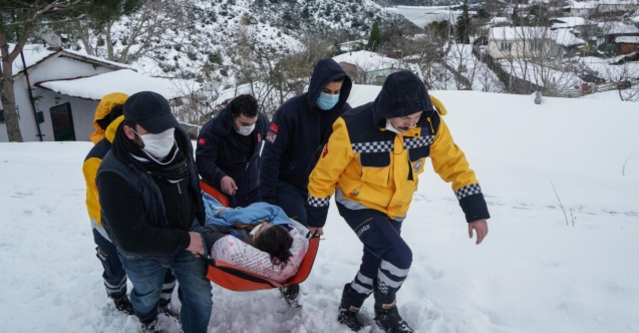 Sultangazi'de hasta almaya giden ambulans kar yağışı nedeniyle yolda mahsur kaldı. İtfaiye ekiplerinin yolu açmasıyla ilerleyen sağlık görevlileri, yaya olarak hastaya ulaştı. Yaklaşık 300 metre sedyeyle taşınan hasta, ambulansa konularak hastaneye kaldırıldı.