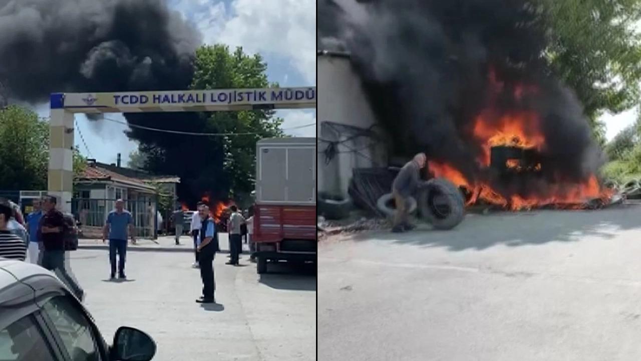 İstasyon Mahallesi Gümrük yolunda bulunan TIR garajı olarak kullanılan alanda kulübede saat 13.15 sıralarında yangın çıktı. Alevler kısa sürede tüm kulübeyi sardı ve yan tarafından bulunan araç lastikleri de yanmaya başladı.