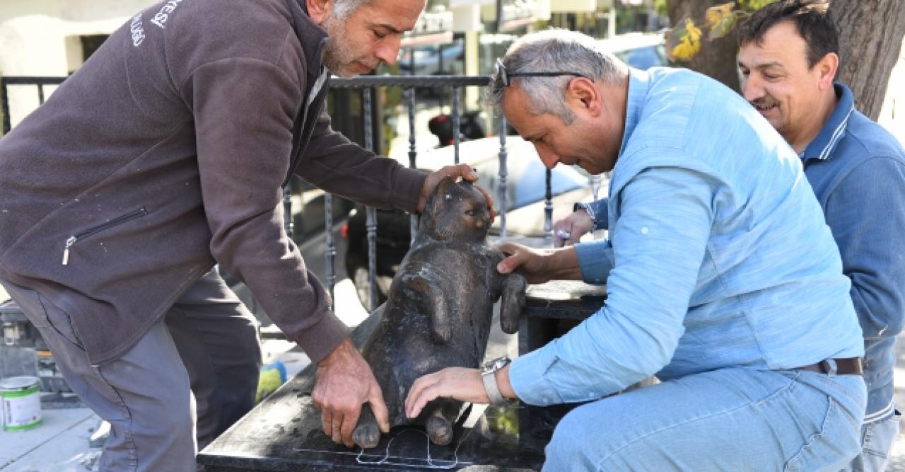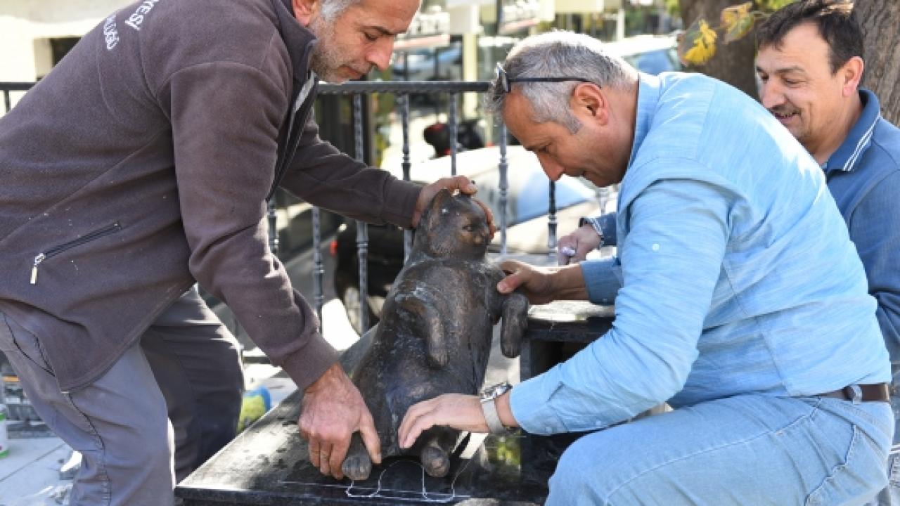 Kadıköy Ziverbey’de bir kaldırım taşında verdiği pozla tanınan kedi Tombili’nin bakıma alınan heykeli, onarıldıktan sonra yerine monte edildi.
