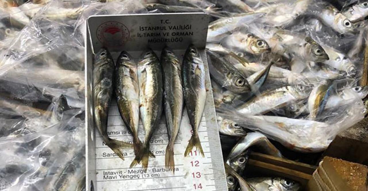 Beylikdüzü'ndeki Gürpınar Su Ürünleri Hali'nde yapılan denetimde yasak dönemde ve boy yasağına aykırı olarak avlanan 1.5 ton civarında 102 kasa istavrite el konuldu.