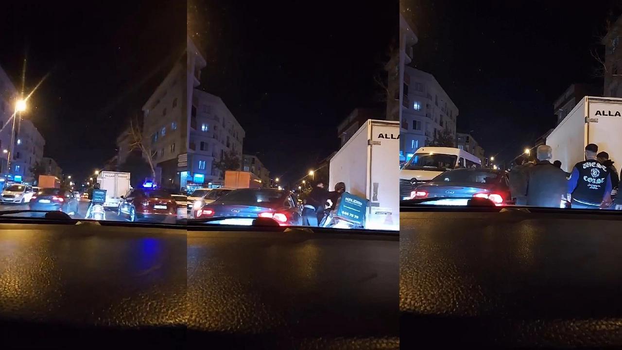 Edinilen bilgiye göre motosikletli kurye ile otomobil sürücüsü arasında yol tartışması çıktı. Tartışmada araçtan inen iki kişi kuryeyi yumruklamaya başladı. Saldırıya çevredekiler müdahale etti. Saldırganlar araçlarına bindirildi. Kurye ve saldırgan 2 kişi yollarına devam etti.