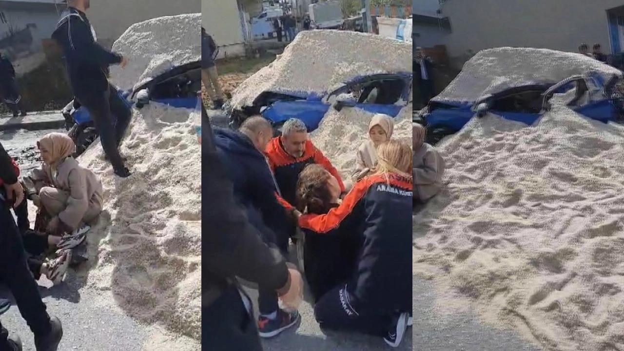 Olay, Güvercintepe Mahallesi Gökdemir Sokakta saat 12.00 sıralarında meydana geldi. İBB'ye ait tuz yüklü 2 kamyon yokuş çıktığı sırada henüz bilinmeyen bir nedenle yokuşta kaymaya başladı. Bu sırada kamyon, arkasında seyir halinde olan sürücü kursuna ait otomobile çarptı. Kamyonda yüklü olan tuzlar otomobilin üzerine döküldü. Araç kullanılamaz hale gelirken, otomobil sürücüsü ve arka koltukta oturan kadın araç içerisinde mahsur kaldı. Yaralı 2 kadın çevredeki vatandaşların yardımıyla otomobilden kurtarıldı. İhbar üzerine olay yerine polis ve sağlık ekipleri sevk edildi. Sağlık ekipleri yaralı 2 kadına ilk müdahaleyi olay yerinde yaptı. Yaralılar ambulansla hastaneye kaldırılarak tedavi altına alındı. Olay yerine gelen polis ekipleri kaza nedeniyle sokağı trafiğe kapatırken yola ve aracın üzerine dökülen tuzlar iş makinesi yardımıyla belediye ekipleri tarafından kaldırıldı.