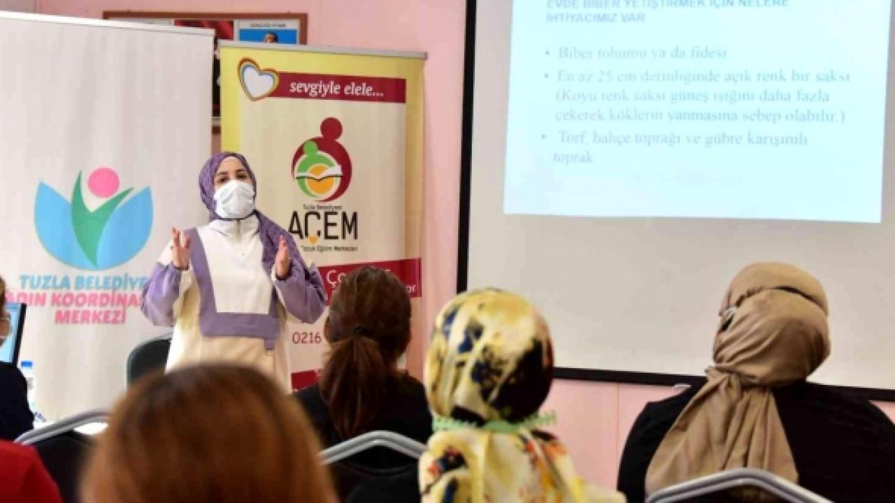 İstanbul İl Tarım ve Orman Müdürlüğü koordinasyonunda Tuzla Belediyesi Anne Çocuk Eğitim Merkezi destekleri ile Tuzlalı kadınlara ve çocuklarına 15 Ekim Dünya Kadın Çiftçiler Günü dolayısıyla ‘Saksıda Sebze Yetiştiriciliği' kursu verildi