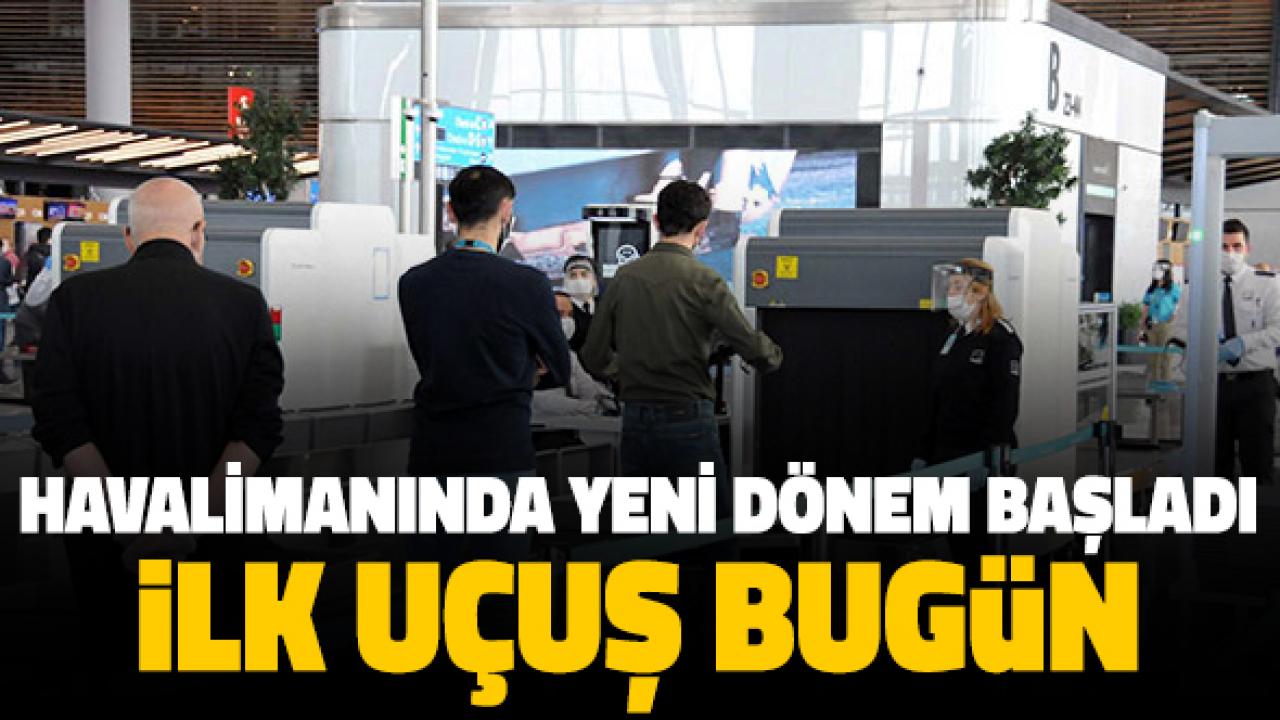 Salgın nedeniyle uçuşlara ara verildiği İstanbul Havalimanı'nda, bugün ilk uçuş heyecanı yaşanıyor. Alınan tedbirler kapsamında havalimanının her noktasına sosyal mesafe kuralını anlatan bilgilendirme panoları konulurken, maskesiz havalimanına giriş yapılamayacak. İlk uçuş nedeniyle İstanbul Havalimanı'na gelen yolcuların vücut ısıları terminal girişinde bulunan termal kamera ile ölçüldü. Güvenlik kontrol noktasında sosyal mesafe kuralına dikkat edildiği gözlemlenirken, güvenlik görevlileri daha önce elle yapılan üst arama işlemini koronavirüs önlemleri kapsamında detektörle yapmaya başladı.