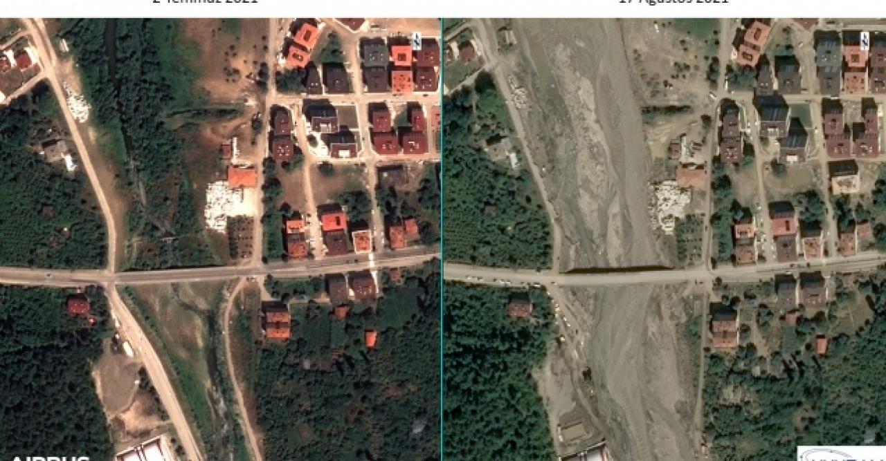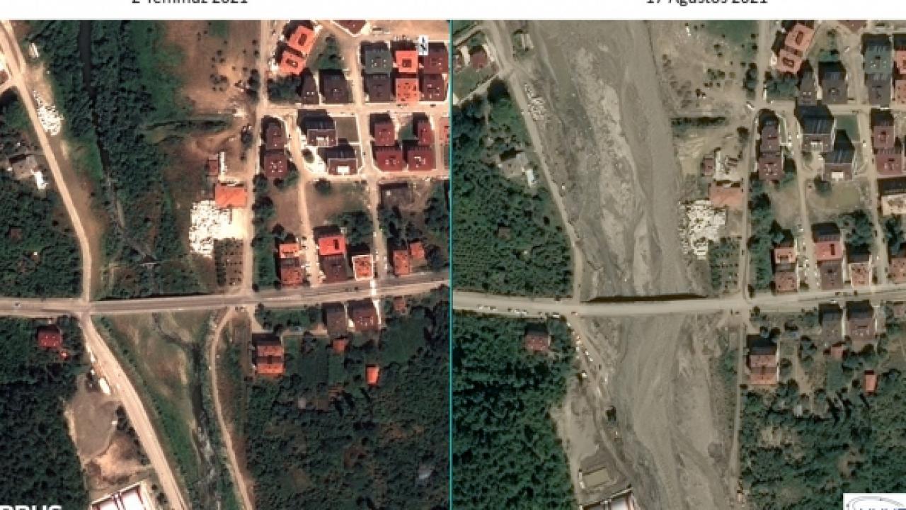 İTÜ UHUZAM Müdürü ve İTÜ İnşaat Fakültesi Geomatik Mühendisliği Bölüm Başkanı Prof. Dr. Mustafa Yanalak, uydu görüntülerinde köprü, bina ve yollarda belirgin hasarlar olduğunu belirterek, "Abana bölgesinde bir delta oluştuğunu görebiliyoruz. Yine bütün havza boyunca taşınabilen malzemelerin selle birlikte taşınıp yığıldığını görebiliyoruz. 30 metre genişliğinde olan dere yatağı sel sonrası 300- 350 metrelere kadar yayıldı" dedi. Türkiye'nin ilk uydu yer istasyonu İstanbul Teknik Üniversitesi (İTÜ) Uydu Haberleşme ve Uzaktan Algılama Uygulama ve Araştırma Merkezi (UHUZAM), Batı Karadeniz'de yaşanan ve 81 kişinin ölümüne yol açan sel felaketinin yarattığı tahribatı uzaydan görüntüledi. İncelemelerde sel öncesi ile sonrasının görüntüleri karşılaştırıldı.