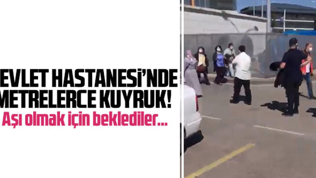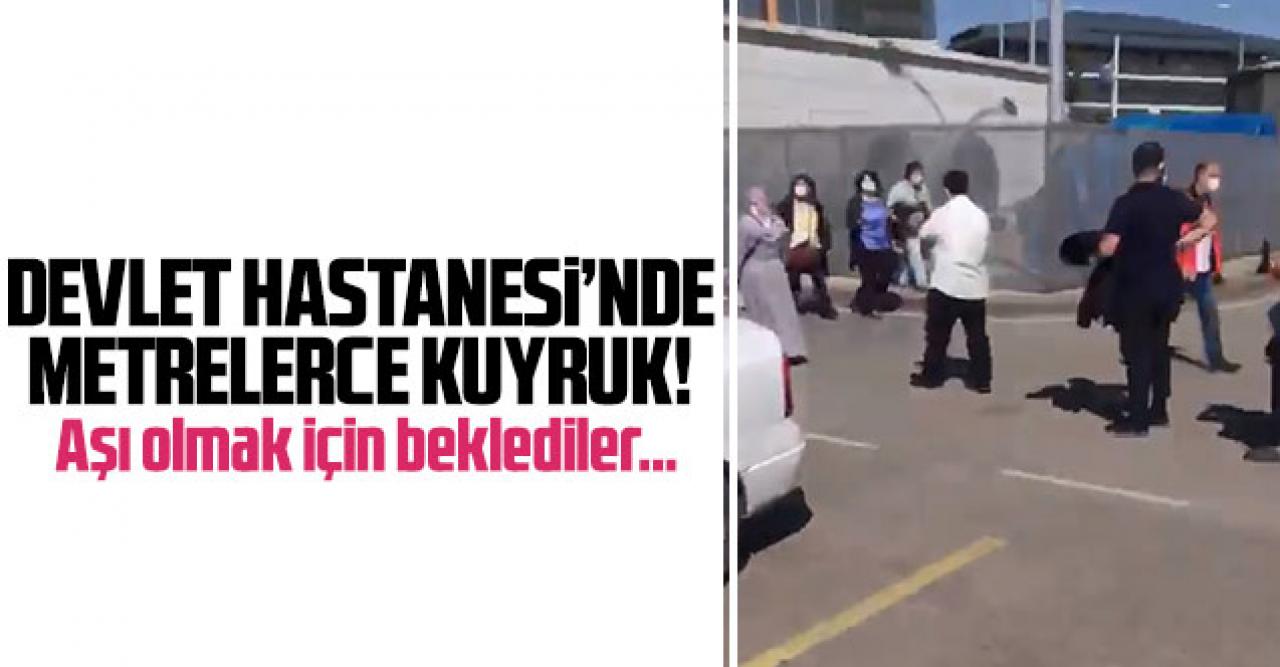 Ümraniye Devlet Hastanesi'nde metrelerce aşı kuyruğu