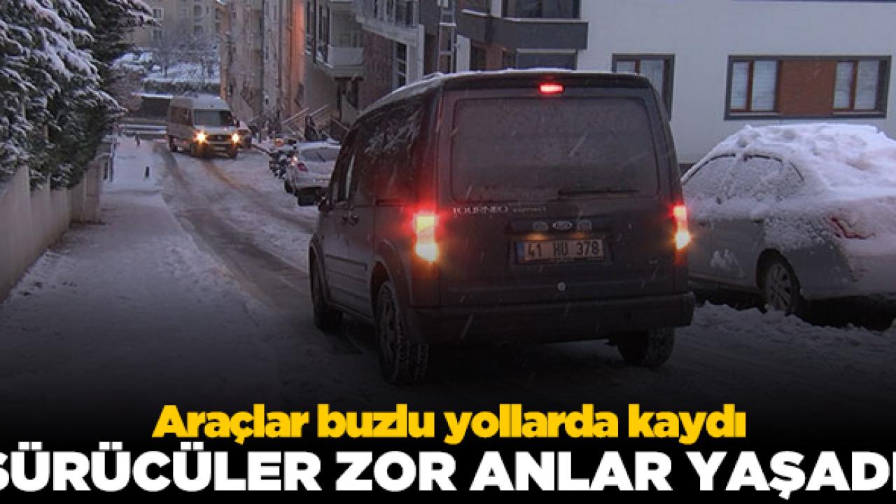 Ümraniye’de kar yağışının ardından buzlanan ara sokaklarda sürücüler zor anlar yaşadı.
