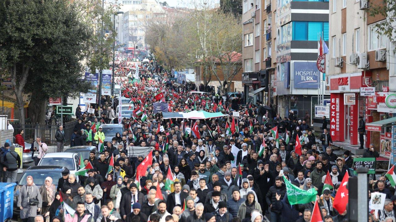 Gazze'ye destek vermek amacıyla Fıstıkağacı Metro Durağı'nda toplananlar, Üsküdar Meydanı'na kadar yürüyüş eylemi gerçekleştirdi. Yürüyüşün varış noktası olan Üsküdar Meydanı'ndaki program, Kur'an-ı Kerim tilaveti ile başladı