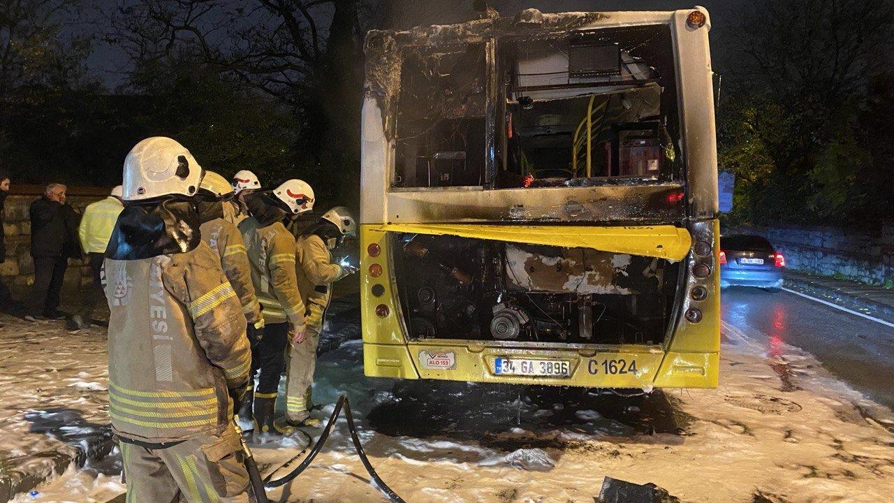 Üsküdar'da içinde yolcuların bulunduğu İETT otobüsü, motor kısmından yanmaya başladı.Şoförün dikkatli olması olası bir faciayı önledi.