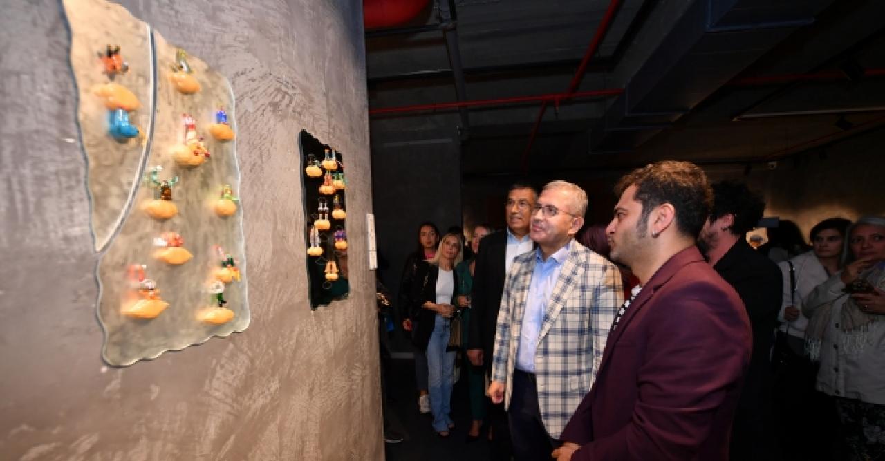 Üsküdar Belediyesi Nevmekan Sahil Galeri’de açılan sergisi için öncesinde bir kokteyl düzenlendi. Başta Üsküdar Belediye Başkanı Hilmi Türkmen olmak üzere, sergiye katılan tüm sanatçılar, yakınları ve çok sayıda Üsküdarlı kokteylde yer aldı. Açılışta konuşan Üsküdar Belediye Başkanı Hilmi Türkmen, sergide ele alınan camın çok özel bir ürün olduğunun altını çizdi. “2022- 2023 Kültür sanat sezonumuzun açılışını bir dizi etkinlikle gerçekleştiriyoruz. Bu sergimizi de bu çerçevede düşündük ve tasarladık. Bu vesileyle yeni sezonumuzu da başarılı bir şekilde geçirmeyi temenni ediyorum. Bu sergimizin ana malzemesi cam. Yani insanlığın eski ama eskimeyen yoldaşlarından birisi. Mutfakta, sanayide, dekorasyonda, tıpta, evlerimizin her köşesinde ve elbette sanatta cam bizim için vazgeçilemez bir malzeme. Tam da bu yüzden cama, camın bize verdiği sağlığa, temizliğe, camın çevreci kökenlerine sevgiyle bağlıyız. Sanat ise ayrı bir yerde duruyor. Bunca kırılgan bir malzemenin hayatımızın bu kadar merkezinde olması insanı gerçekten şaşırtıyor. Sarayların, ibadethanelerin, evlerin güzelliklerine güzellik katıyor cam.”