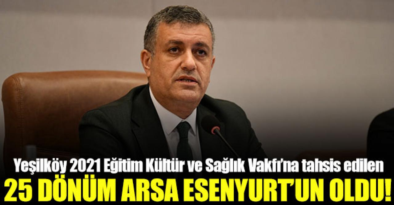 Esenyurt Belediye eski Başkanı Necmi Kadıoğlu’nun, 2011 yılında kurucusu olduğu Yeşilköy 2001 Eğitim Kültür ve Sağlık Vakfı’na üniversite yapılması için tahsis ettiği Esenyurt Belediyesi’ne ait 25 dönümlük arsa, Esenyurt Belediyesi tarafından geri alınıyor. Esenyurt Belediye Meclisi’nin Eylül ayı ilk oturumunda Emlak İstimlak Müdürlüğü’nün Başkanlık Teklifi olarak meclis gündemine gelen 1. Madde’de, Çınar Mahallesi 428 Ada 1 Parsel’de bulunan Esenyurt Belediyesi’ne ait 25996 metrekarelik arsanın, 10.03.2011 tarihli meclis kararı ile Yeşilköy 2001 Eğitim Sağlık ve Kültür Vakfı’na 25 yıllığına bedelsiz olarak tahsis edildiği aktarıldı.