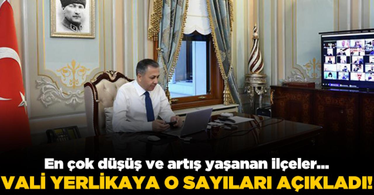 İstanbul Valisi Ali Yerlikaya; İstanbul'da vaka sayılarının her geçen gün azaldığını, geçen haftaya oranla en çok düşüşün Bakırköy, Adalar, Avcılar, Bahçelievler ve Sultangazi'de en az düşüşün ise Şişli, Şile, Üsküdar, Zeytinburnu ve Beyoğlu'nda olduğunu açıkladı.