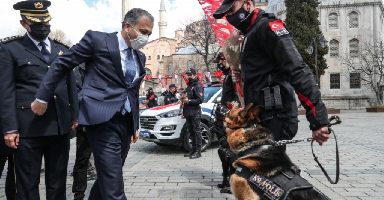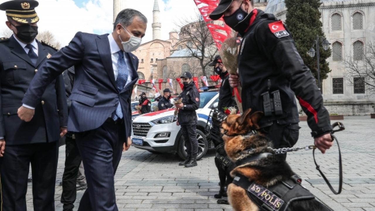 Türk Polis Teşkilatı'nın 176'ncı kuruluş yıldönümü Sultanahmet Meydanı'nda kutlandı. Kutlama törenine İstanbul Valisi Ali Yerlikaya, İstanbul İl Emniyet Müdürü Zafer Aktaş ve çok sayıda polis memuru katıldı. Yerlikaya ve Aktaş, polisleri tek tek tebrik etti. Vali Ali Yerlikaya "Kahraman Türk polisi kuruluşunuzun 176. Yıldönümü kutlu olsun" şeklinde polislere seslendikten sonra polis memurlarına çiçek verdi. Vali polis atını ve polis köpeğini sevdi. Vali Ali Yerlikaya, 'Dost' isimli polis köpeğini severken köpek saldırmak için hamle yaptı. Vali Yerlikaya geri çekilerek hamle yaptı. Köpek havlamaya devam edince Yerlikaya gülerek uzaklaştı.