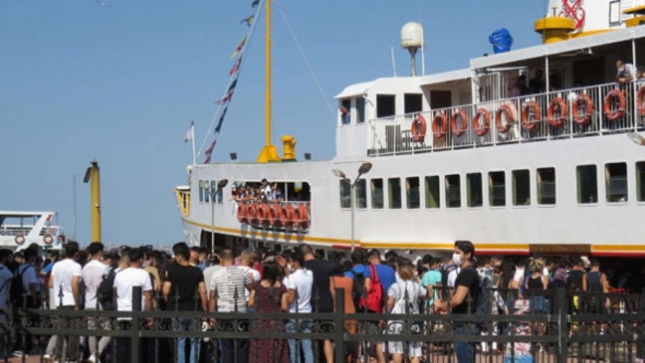 Kurban Bayramı'nı İstanbul'da geçirenler sabahın erken saatlerinde, güzel havayı da fırsat bilerek Adalar'a gitmek için Kadıköy’deki iskeleye geldi. Vapurlara binmek isteyen çok sayıda kişi uzun kuyruklar oluşturdu. Metrelerce uzayan kuyrukta çok sayıda vatandaşın koronavirüs önlemleri arasındaki sosyal mesafeye uymadığı görüldü.