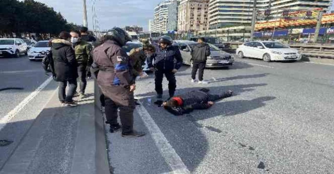 Beylikdüzü'nde E-5'te seyir halinde olan bir motosiklet binek araca çarparak devrildi. Yaralı sürücüye çevredeki vatandaşlar yardım etti.
