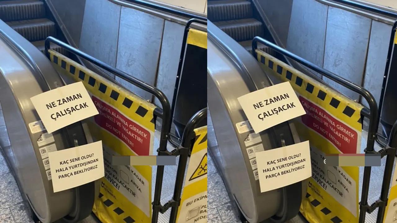 Durumdan memnuniyetsizliğini dile getirmek ve yetkililere sesini duyurmak isteyen vatandaşlar, "NE ZAMAN ÇALIŞACAK?" ve "KAÇ SENE OLDU? HALA YURT DIŞINDAN PARÇA BEKLİYORUZ" ifadelerini yazdıkları kağıtları merdivenlerin başına yapıştırdı.