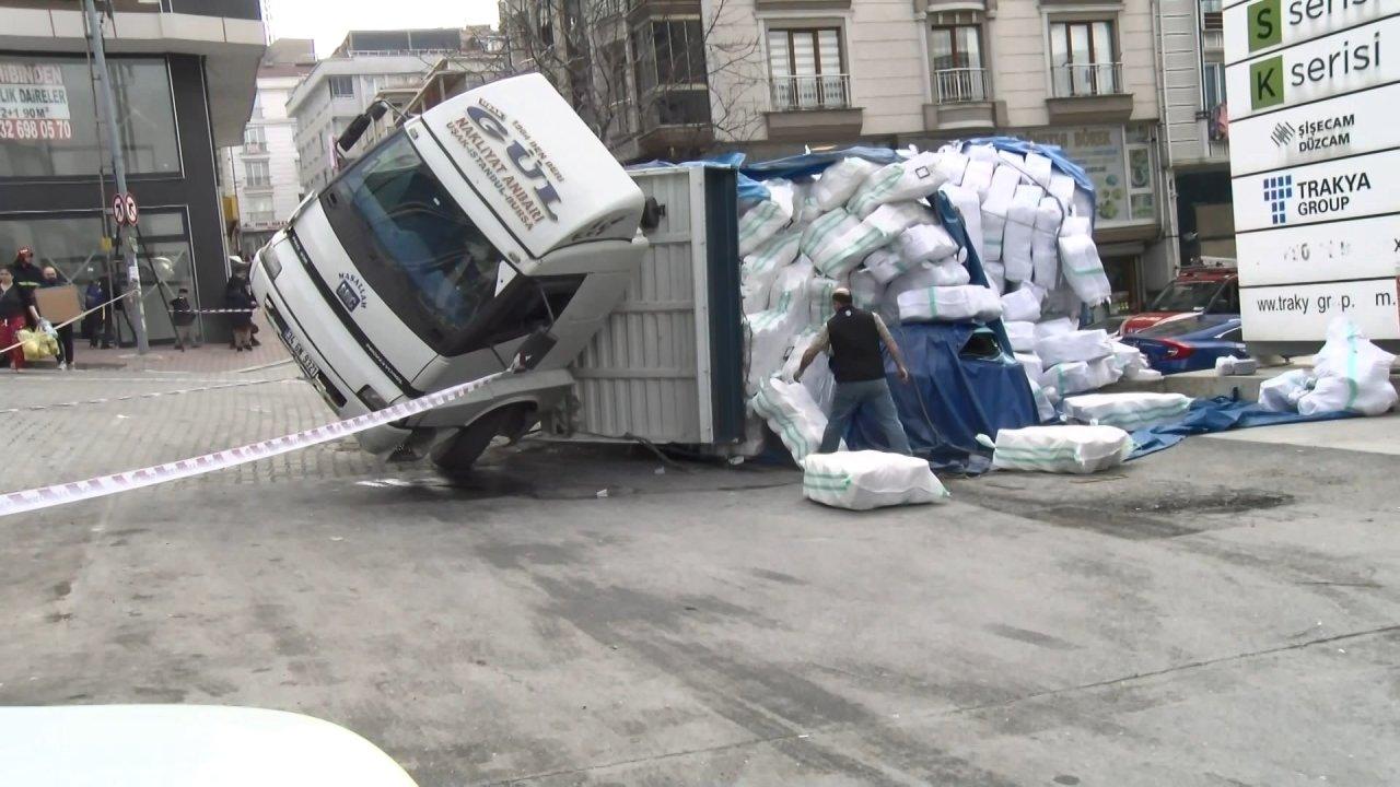 Olay, saat 11.45 sıralarında Namık Kemal Mahallesi'nde meydana geldi. İddiaya göre, sürücü Aydın Gül iplik yüklü 34 GN 9321 plakalı kamyonla iş yerine gidiyordu. Sürücü Gül, 122. sokağa girmek için manevra yaptığı sırada, iddiaya göre sokak başında park halindeki araçlar nedeniyle virajı alamadı. Kamyon park halindeki 2 aracın üzerine devrildi. Kamyonun üzerine devrildiği araçlardan biri, başka bir otomobile çarptı. 3 araçta maddi hasar meydana gelirken, ihbar üzerine olay yerine itfaiye, polis ve zabıta ekipleri sevk edildi. Çevrede güvenlik önlemi alındı. Kamyonun park halindeki araçların üzerine devrildiği anlar, çevredeki bir iş yerinin güvenlik kamerasına yansıdı.