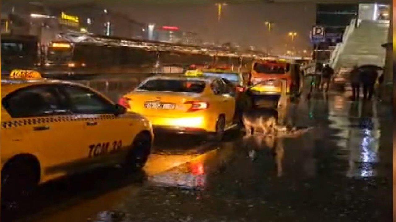 İstanbul'da gece saatlerinde etkili olmaya başlayan yağıştan etkilenen köpek, Bahçelievler D-100 Karayolu üzerinde bir müşterinin kapıyı açmasını fırsat bilerek taksiye bindi.