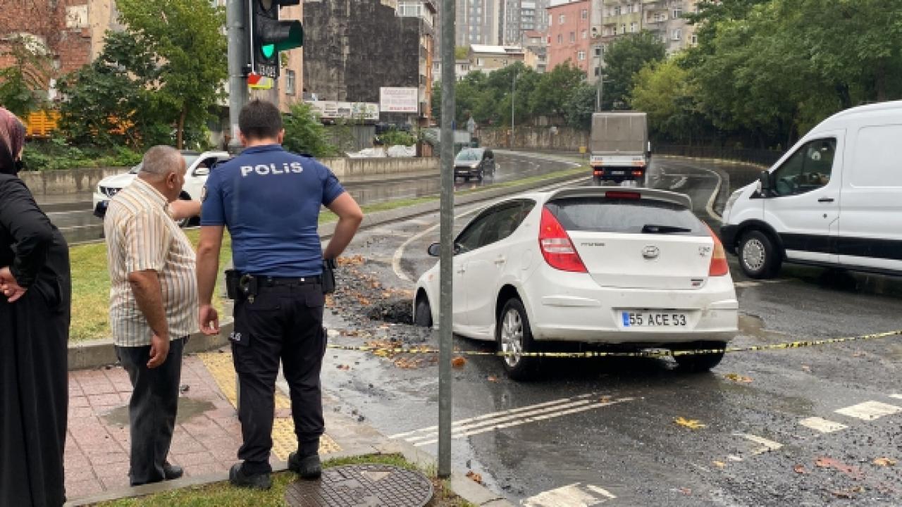Gaziosmanpaşa'da etkili olan yağmur sonrası Validesuyu Caddesi’nde yol çöktü. Salih Osman’ın kullandığı otomobil, çukura düştü. Osman, "Burada sel akıyordu. Adımı atana kadar yol çöktü" dedi