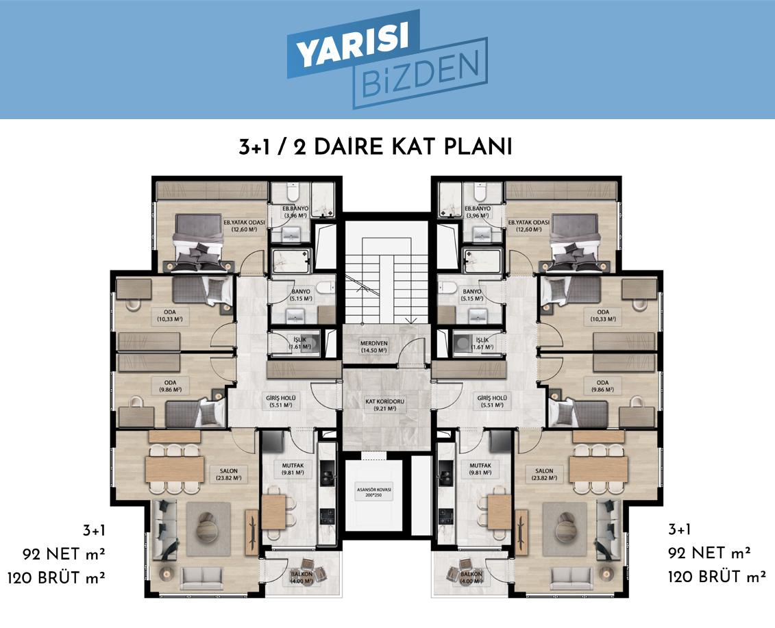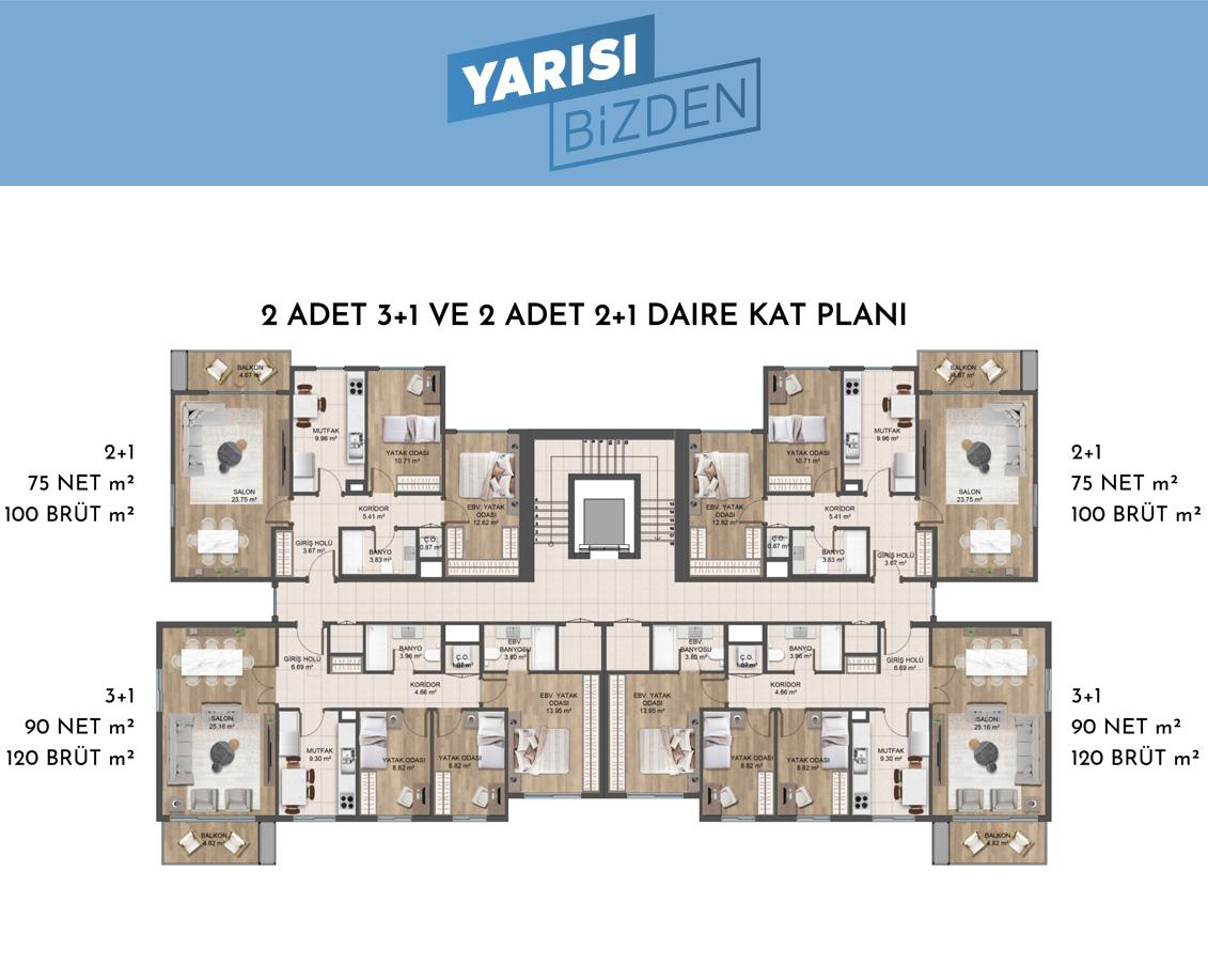 Cansev Temuçin - “İstanbul’da Yüzyılız Dönüşümü” sloganı ile tanıtılan ve evini yenilemek isteyenlere “Yarısı Bizden” kolaylığı sunan TOKİ, kampanya görsellerini de yayınladı. 2+1 ve 3+1 dizayna sahip evlerin kat planları da belli oldu. Başvuru ve kampanya detaylarının netleşmesi ile birlikte vatandaşlar, Yarısı Bizden kampanyasındaki evlerin bitmiş hallerinin nasıl görüneceğini de araştırmaya başladı. İki yıl içerisinde tamamlanması beklenen proje kapsamında inşa edilecek farklı büyüklüklerdeki evlerin hem iç hem de dış proje görselleri görücüye çıktı.