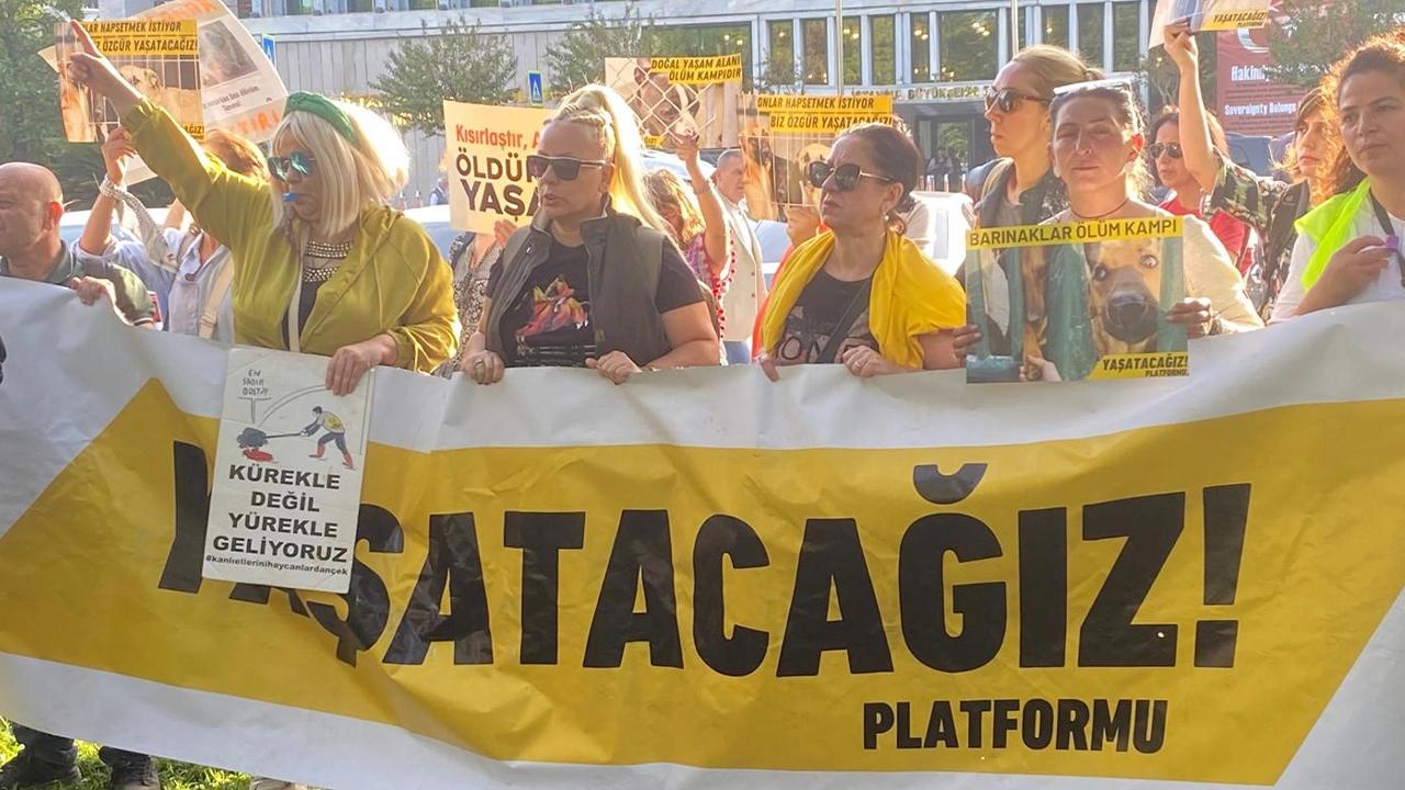 Yaşatacağız Platformu adına konuşan sözcü Ege Yetiş, son 4 ayda yüzlerce köpeğe öldürdüklerini ifade ederek, “Ancak biz ilk gün söylediklerimizden bir adım geri atmıyor, yasal olan her şeyin meşru olmadığını ve yaşam hakkının oylamaya açık olmadığını söylüyoruz. Biz biliyoruz ki ne güvenlik sorununun kaynağı köpekler, ne de var olan güvenlik sorununun çözümü köpekleri ölüm kamplarına hapsetmek ve katletmek. 20 yıldır görevini yapmayan belediyelerin; her gün çocuklar ve kadınlar katledilirken, şiddete maruz kalırken failleri cezasızlık politikalarıyla ödüllendiren devletin; sokakları, yaşam alanlarımızı rant için yaşanamaz hale getirenlerin sorumluluğunu köpeklermiş gibi gösterenlere karşı sesimizi çıkarıyoruz” dedi.