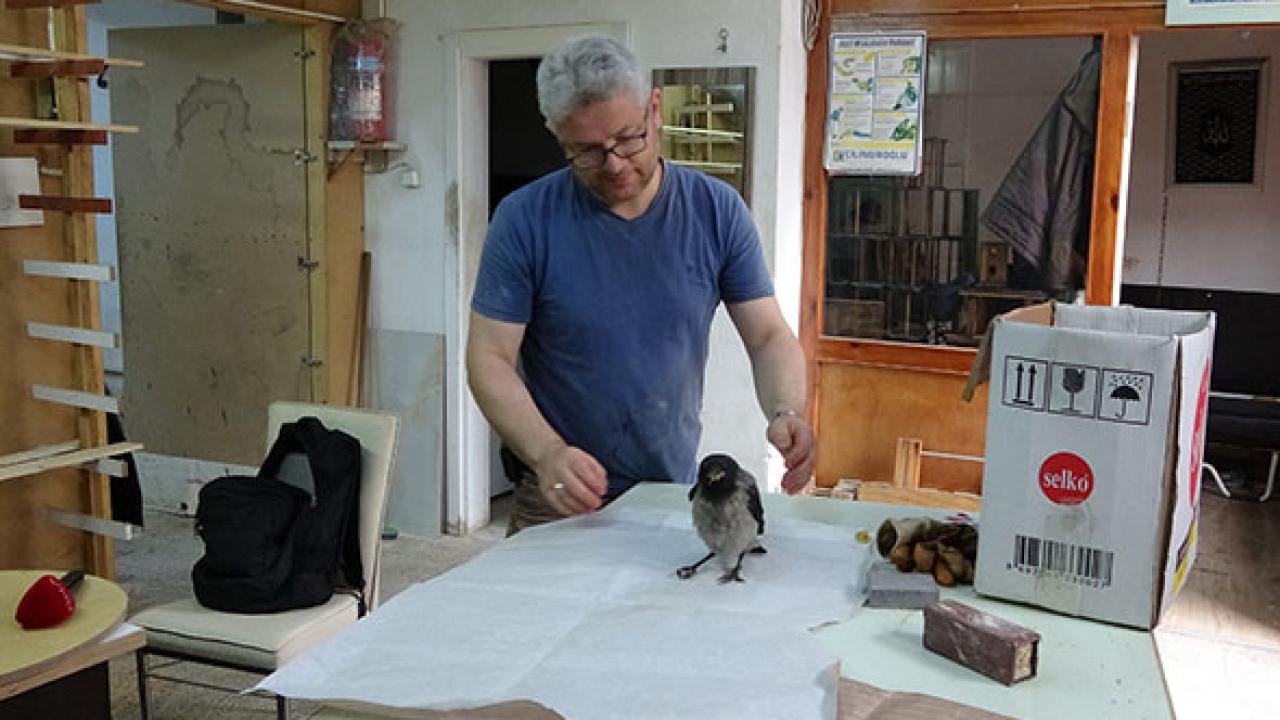 Esentepe Mahallesi'nde geçen hafta ağaçtaki yuvasından iki defa düşen yavru karga, itfaiye ekiplerince merdiven aracıyla tekrar yuvasına yerleştirildi. Önceki gün yine düşen ve ayaklarından yaralı olduğu görülen yavru kargaya bu sefer esnaf Hasan Melikoğlu, sahip çıktı. Yavru kargayı iş yerine götürerek iki gün boyunca bakıp, besleyen Melikoğlu, durumu Sultangazi Belediyesi Veteriner İşleri Müdürlüğü'ne haber verdi. Gelen ekipler yavru kargayı, tedavi edilmek üzere Merkez Habibler Mahallesi'nde bulunan barınağa götürdü.