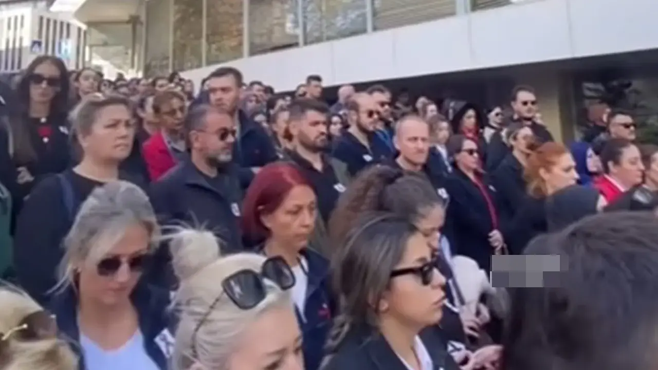 Üniformalarını giyen hastane çalışanları eylemlerini sessiz kalarak devam ettirdi. O anlarda polis ekiplerinin güvenlik nedeniyle bekleyişi sürerken, işsiz kalan çalışanlar adalet için protestolarını sürdüreceklerini belirtti.