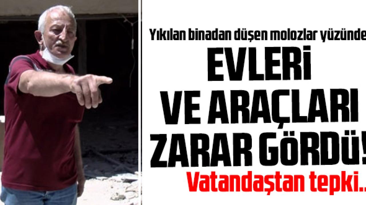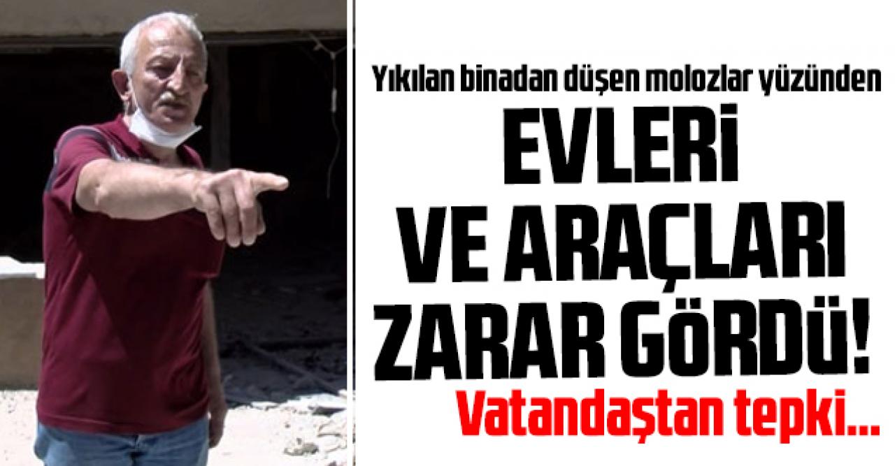 Yıkılan binanın karşısındaki tek katlı müstakil evde oturan İbrahim Kaplan, "Cumartesi gününden beri kimse bana cevap vermiyor. Şu an yağmur yağsa benim evimin içerisine her yer su dolacak. Doğalgaz elektrik tesisatları var. Bu binadan iki kapı basınçla patladı ve benim bahçeme düştü. Bu zararın giderilmesini istiyorum. Benim mağduriyetimin yetkililer tarafından giderilmesini istiyorum. Bu konuya duyarlı olmalarını istiyorum. Kimse de duyar göstermiyor bu konuda. Enkazda herhangi bir çalışma yapılmadı. Enkaz olduğu gibi yerinde duruyor" dedi.