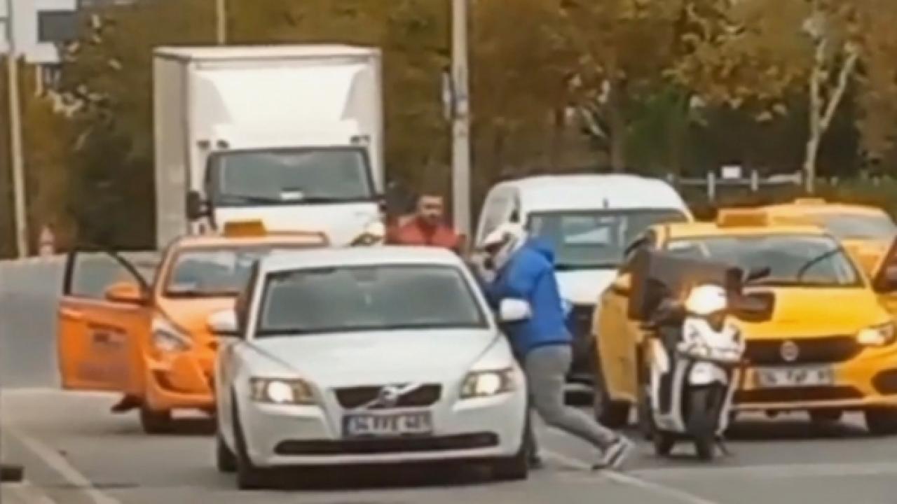 Sultanbeyli Eşref Bitlis Bulvarı'nda dün öğle saatlerinde bir motosikletli ile otomobil sürücüsü arasında tartışma çıktı. Motorundan inen sürücü, otomobil sürücüsü ile kavga etmeye başladı. Ardından motosiklet sürücüsü, otomobille art arda tekme attı. Bunun üzerine otomobil sürücüsü aracın diğer kapısından aşağı indi. Sürücüler arasında yaşanan arbede, çevredekilerin müdahalesiyle sona erdi. O anlar cep telefonu kamerasına yansıdı.