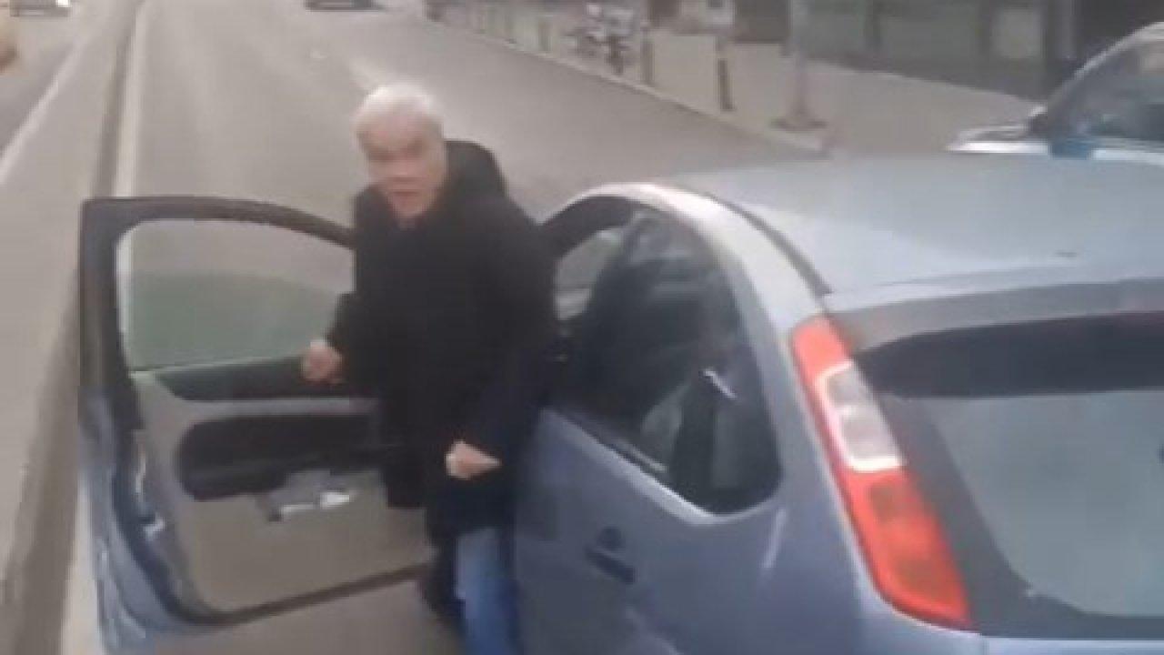 Otomobil sürücüsü daha sonra içinde yolcu bulunan minibüsün önüne geçerek durdu. Minibüste yolcuların olmasına aldırmayan sürücü, aracından inerek yolun ortasında minibüs şoförüyle tartışmaya başladı. Küfürler savuran otomobil sürücüsü, bir süre sonra aracına binerek uzaklaştı. O anlar minibüs şoförünün cep telefonu kamerasına yansıdı.